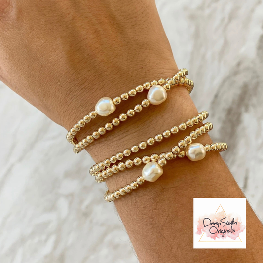 Ella 18k Gold Beaded Pearl Stretch Bracelet