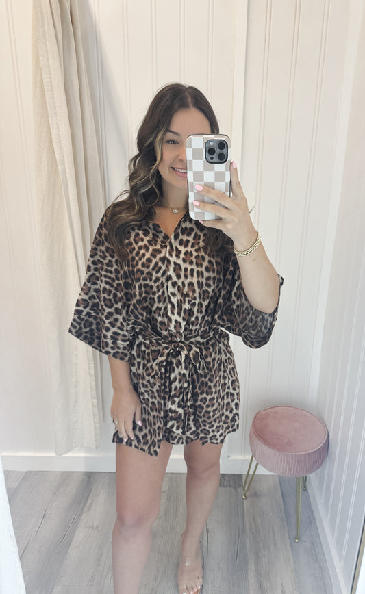 Leopard Print Sleeveless Wrap Tie Front Romper Dress