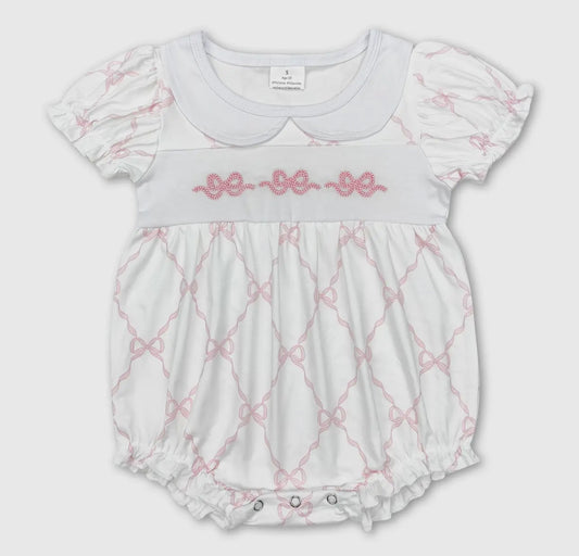 Girls Bow Smocking Embroidery Hot Pink Romper