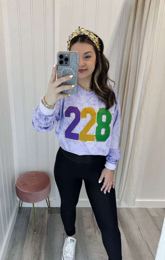 228 Mardi Gras Embroidered Comfort Color Sweatshirt
