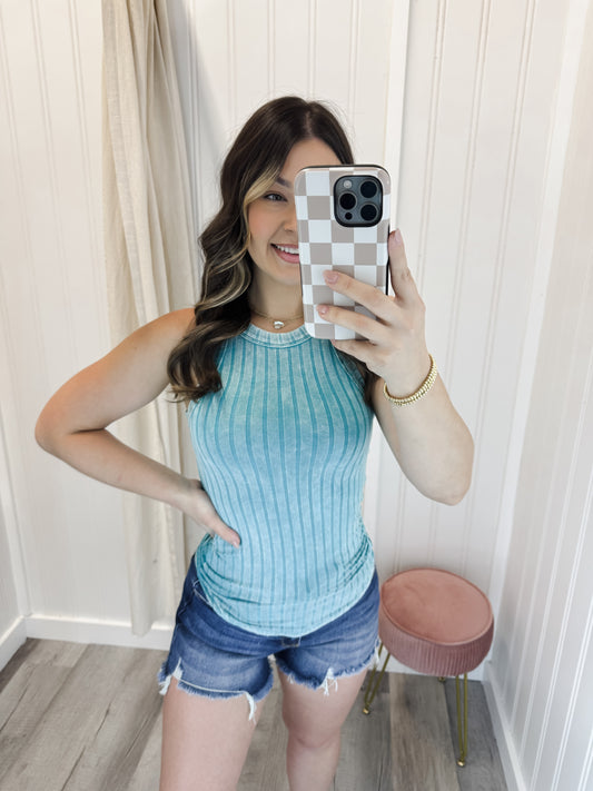 Mineral Washed Ribbed Knit Shift Mini Dress