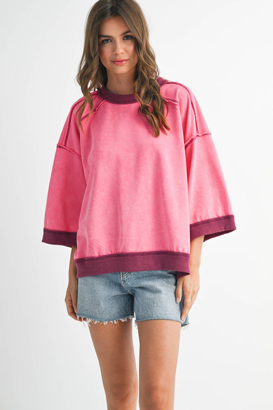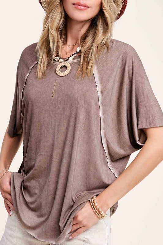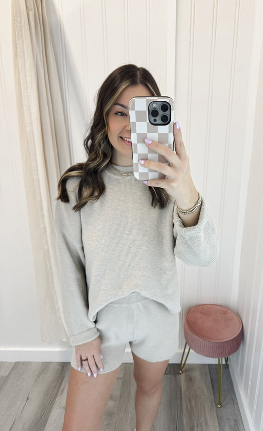Brushed Waffle Fabric Loose Fit Long Sleeve Top
