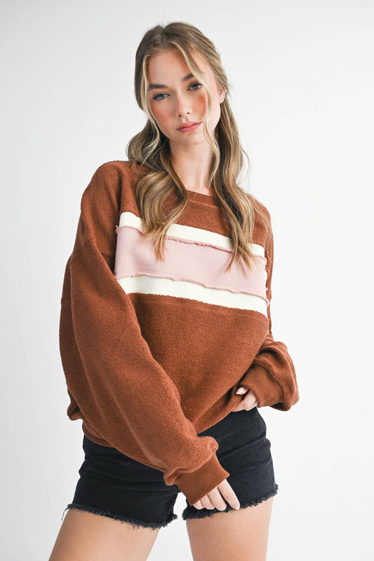 Brushed Waffle Fabric Loose Fit Long Sleeve Top