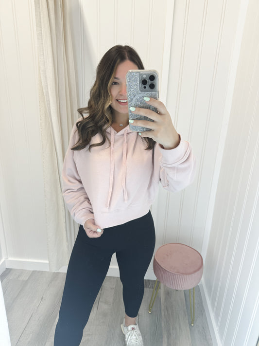 French Terry Cropped Hoodie - Baby Pink