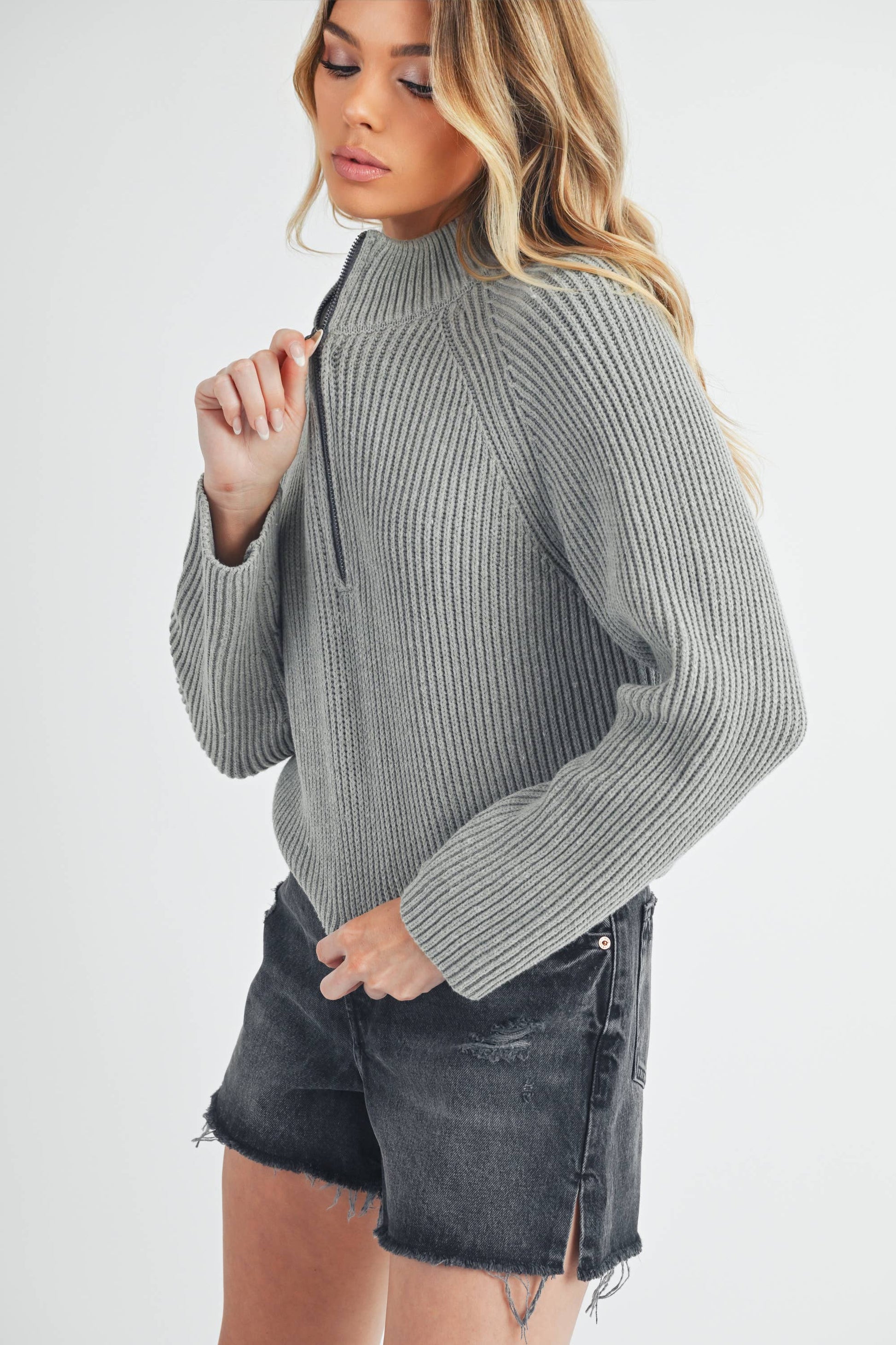 Meet your new favorite everyday Debbie Half Zip sweater layer: a soft, ribbed knit pullover with a boxy silhouette and half-zip closure. Featuring a slightly cropped fit, slouchy raglan sleeves, and classic styling, this timeless sweater is perfect for layering and can be worn year-round.