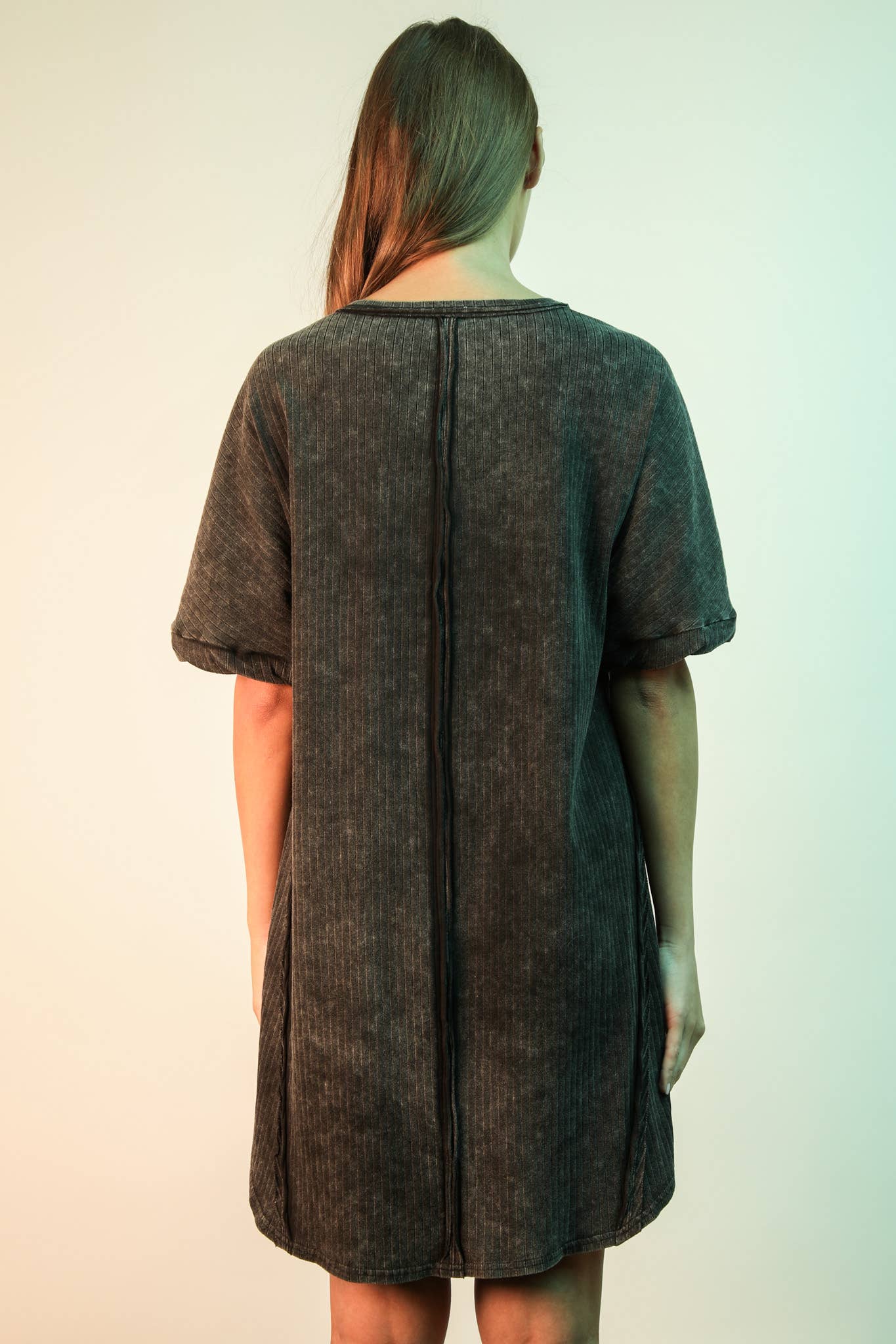 Mineral Washed Ribbed Knit Shift Mini Dress
